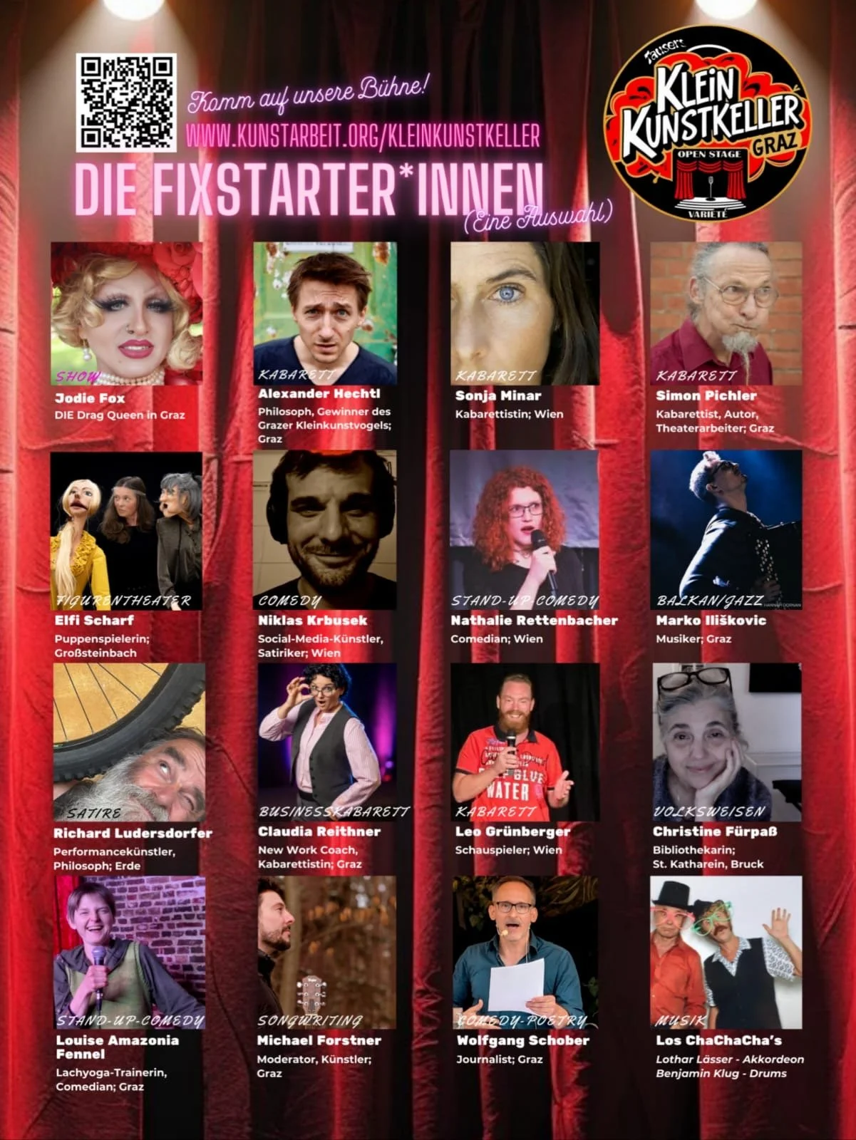 Lesungen – TermineLive-Auftritte von Wolfgang Schober Die nächsten Termine 26. September 2025, Comedy-Poetry im “Kleinkunstkeller”, Club Gourmet, Graz24. Oktober 2025, Comedy-Poetry im “Kleinkunstkeller”, Café Stockwerk, GrazVerschoben: Lesung, Buchhandlung Buchner, FürstenfeldNeuer Termin wird noch bekannt gegebenAbsolvierte Termine15. August 2023, “Humor im Kräutergarten”, Söchau13. September 2023, Buchpräsentation “Das Nieshorn und die Schachforelle”, Galerie Zimmermann-Kratochwill2.Dezember 2023, Lesung “Seiten Weiss” im G'sund & Natur Hotel “DIE WASNERIN”, Bad Aussee 14.Februar 2024, Lesung Office-Opening “Wurzinger Design” in Weiz15.März 2024, Lesung Rotary-Club RC Fortuna in Graz 13.Juni 2024, Lesung bei Design ab Hof, 18:00 Uhr, PöllauInfos unter: www.design-abhof.at3. August 2024, “Humor im Kräutergarten”, Söchau, 18:30 Uhr5. Februar 2025, Lesung, HTBLVA Ortweinschule Graz14. Juni 2025, Lesung bei “Design ab Hof”, Pöllau, Schönau 64, 17:00 Uhr1. August 2025, Lesung bei, “Humor im Kräutergarten”, SöchauTermin-AnfragenWolfgang SchoberEmail: schober (at) spiritofstyria.at Tel: 0650-4786100